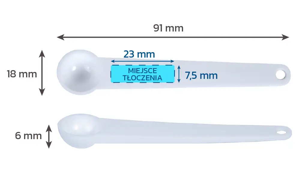 Dzięki naszym technikom znakowania możliwe jest naniesienie na wkładce tłoczonego logo na plastikowej rączce miarki lub informacji klienta. Oferujemy personalizację w granicach pokazanego miejsca wkładki na tłoczenie, co pozwala na wyróżnienie Twojej marki i dostosowanie produktu do Twoich potrzeb.